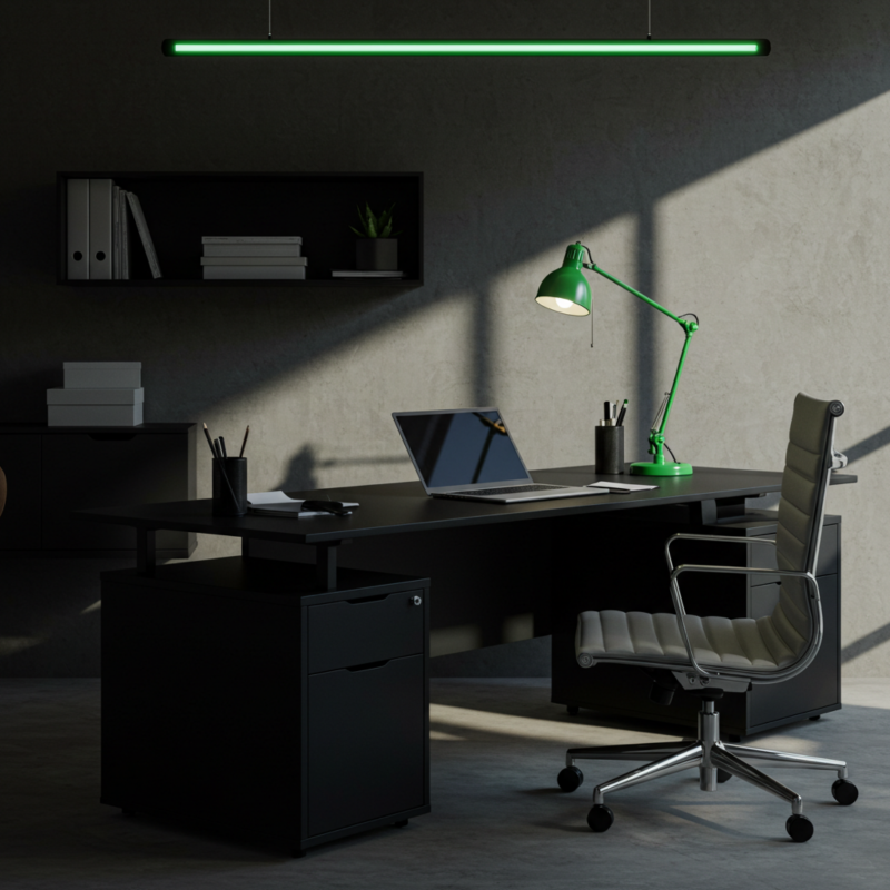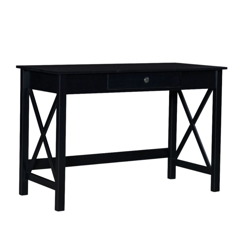 Modern Black Writing Desk with Wide Drawer Storage and Sleek Profile