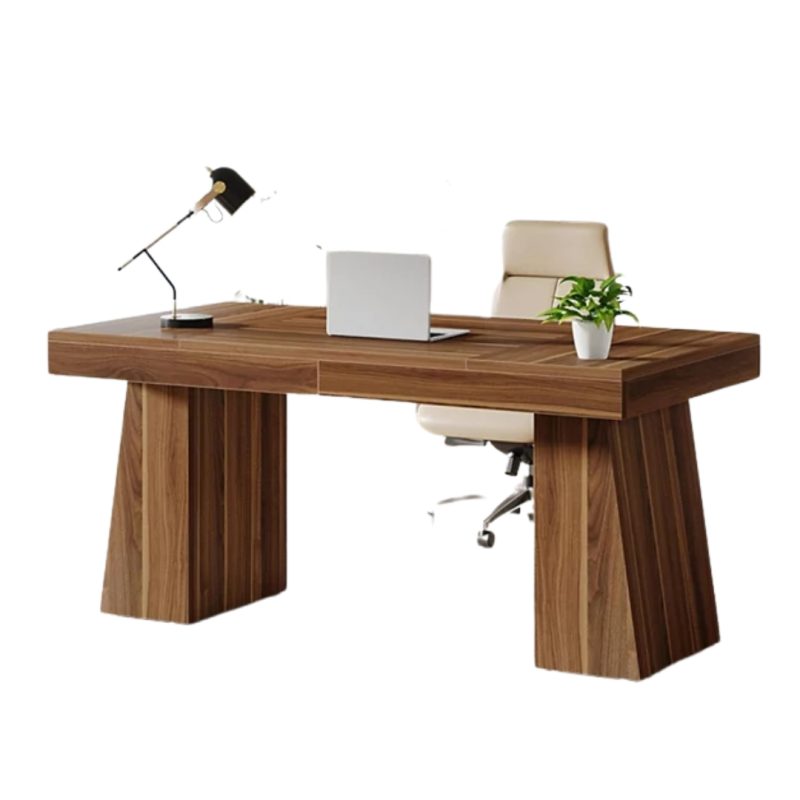 55-Inch Mid-Century Executive Desk with Double Trapezoid Wooden Base