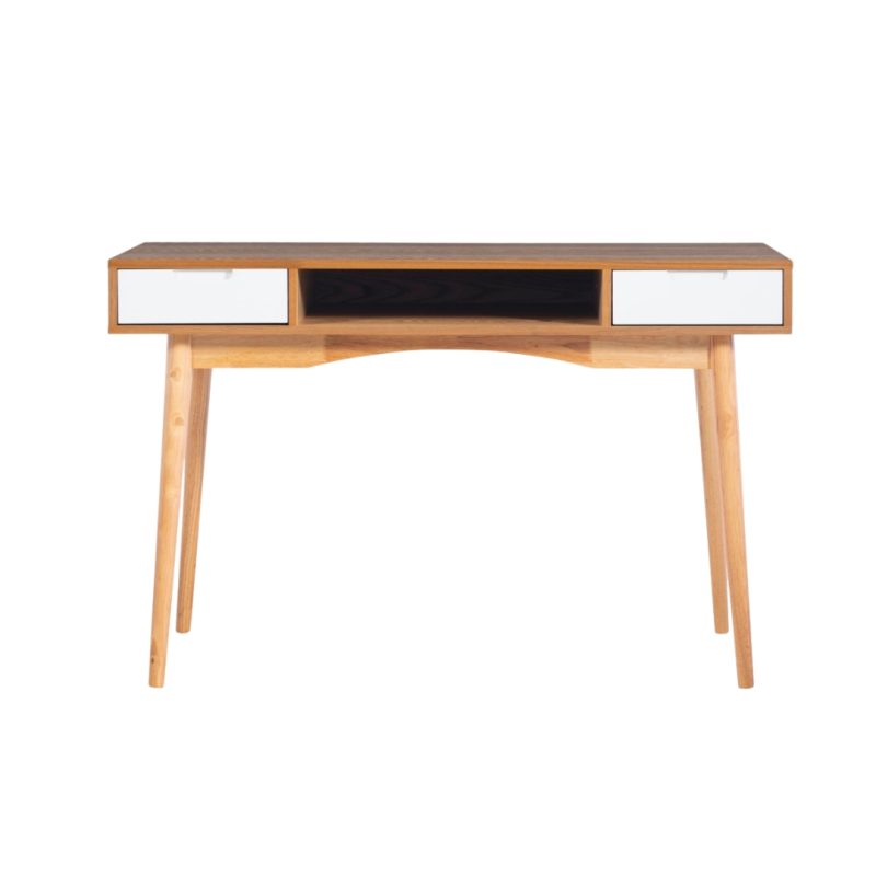 Contemporary Two-Drawer Writing Desk with Ash Veneer Frame and White Accents