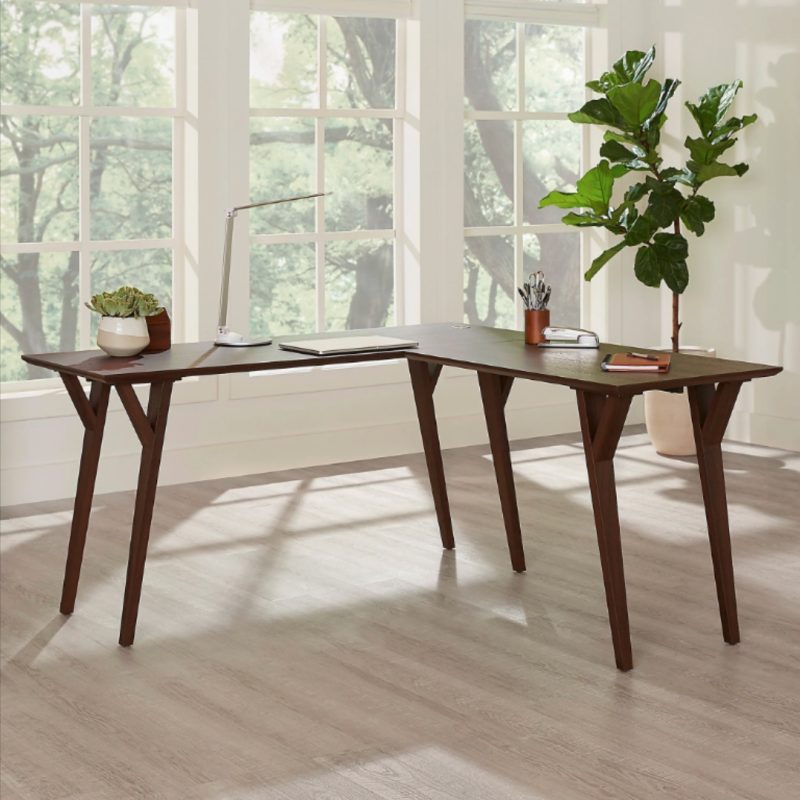 62-Inch L-Shaped Walnut Computer Desk with Cord Management and Modern Finish