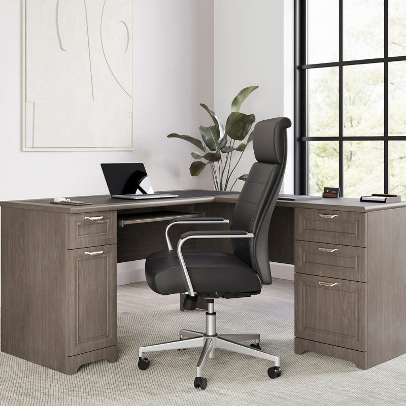 59-Inch Gray L-Shaped Corner Desk with Drawers and Cable Management System