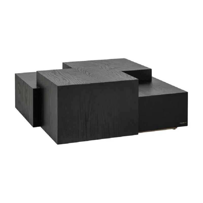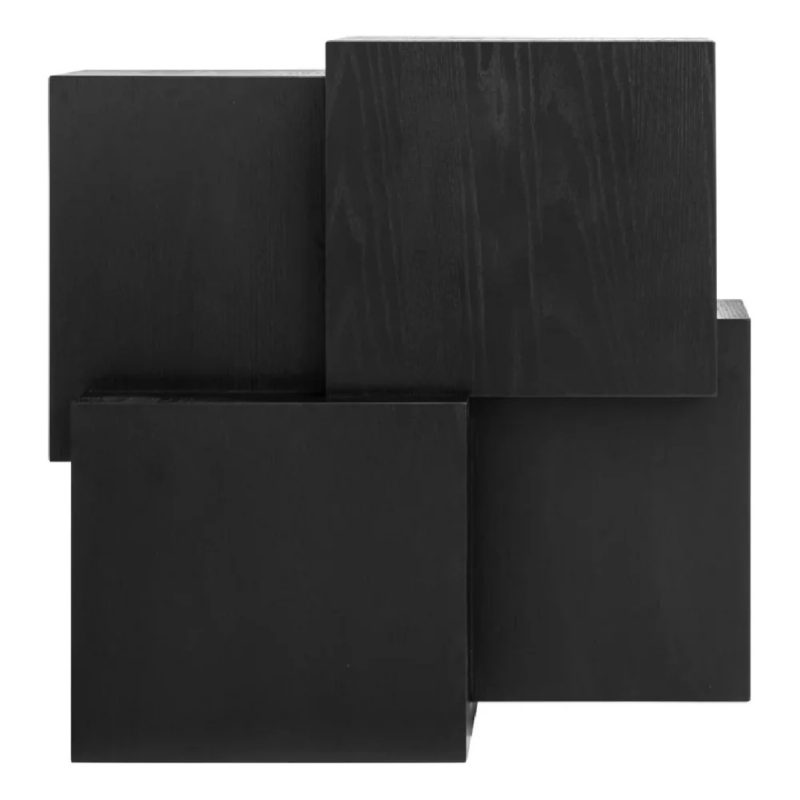 Modern Black Oak Square Coffee Table with Multi-Level Geometric Design