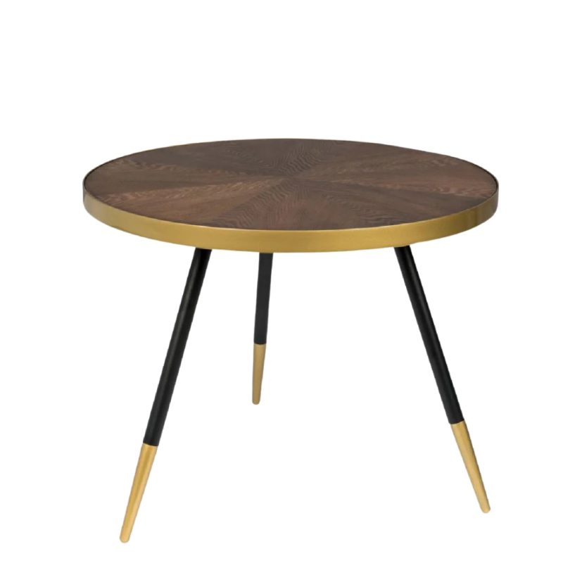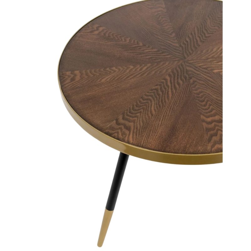 Elegant Gold Rim Walnut Veneer Round Coffee Table