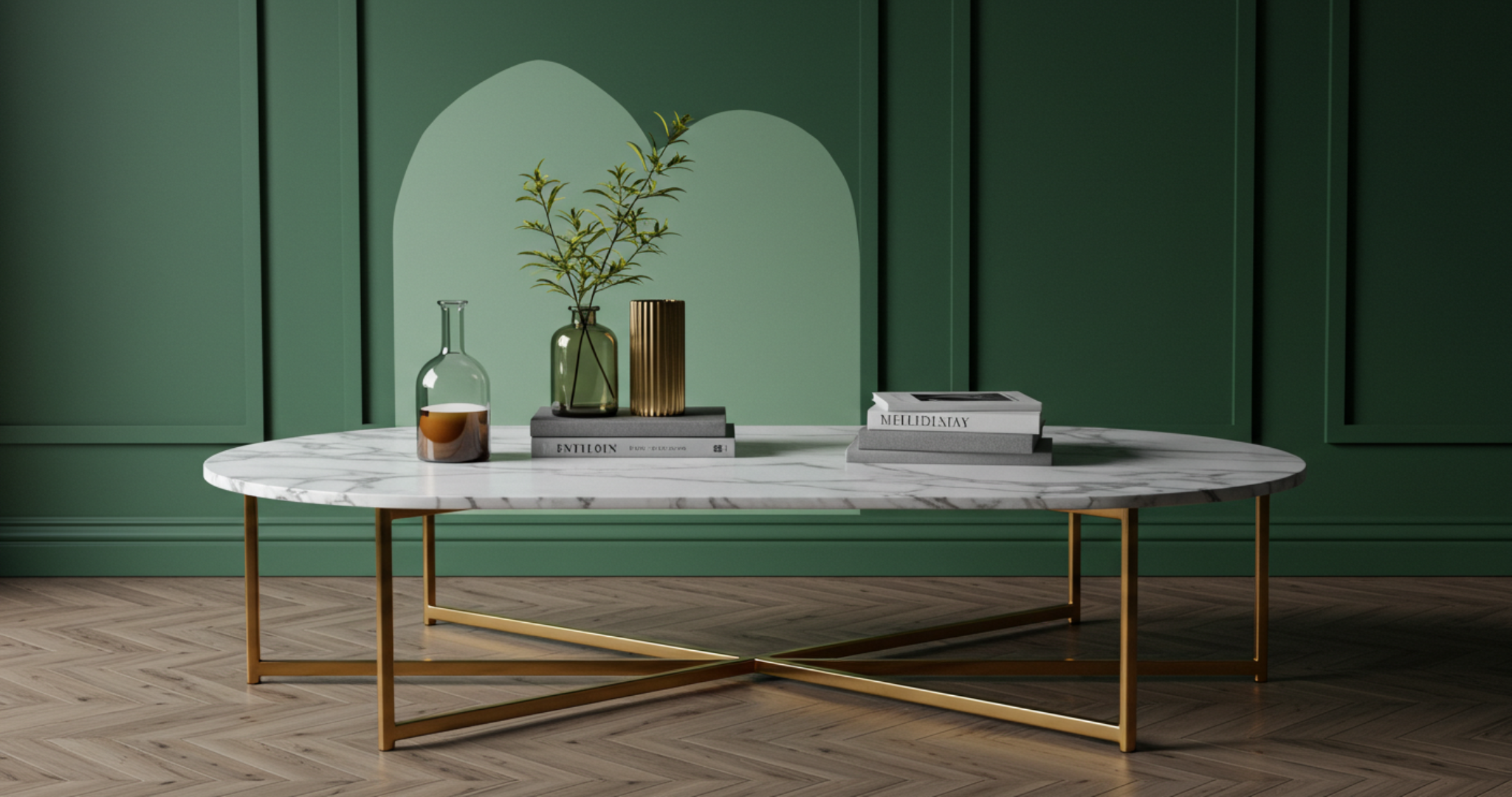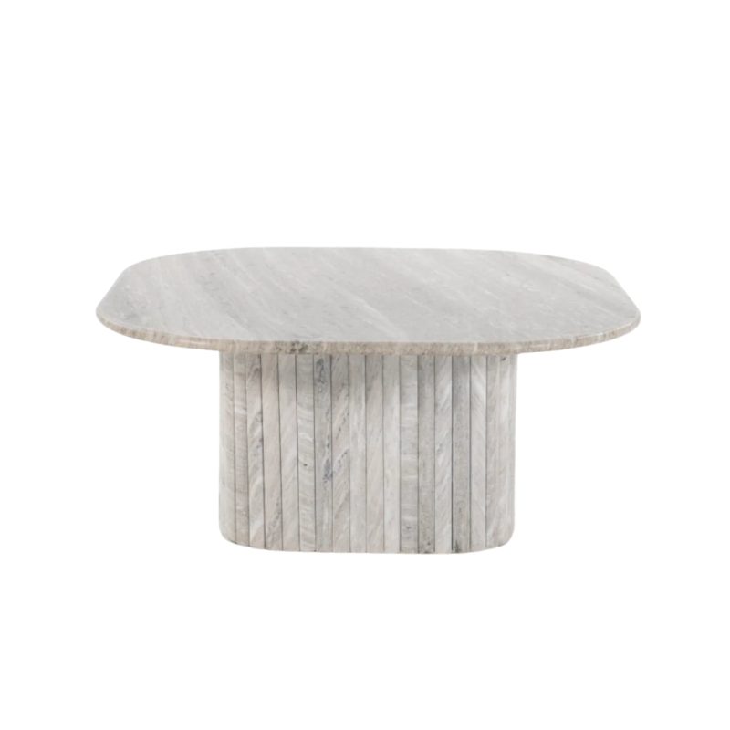 Luxury Gray Marble Coffee Table with Mango Wood Base