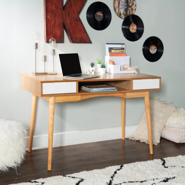 SKU: GF1010 Category: Office Desk Tags: ash veneer furniture, contemporary writing desk, desk with storage, home workspace desk, mid-century inspired desk, minimalist wooden desk, modern white accent desk, small office furniture, two drawer office desk, white and wood desk