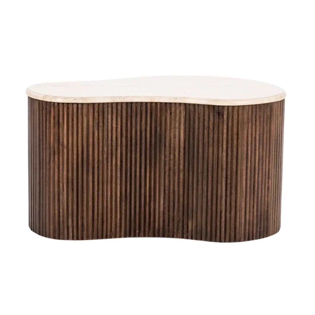 Elevate your living space with the timeless charm of our Handcrafted Organic Travertine Coffee Table with Mango Wood Base. Designed to complement contemporary interiors, this table embodies modern elegance with a natural twist. Its organically shaped travertine top exudes fluidity and movement, creating a focal point that captivates the eye. No two pieces are the same — the distinctive curves and natural textures ensure each table is as unique as your home.