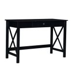 Home Office Desk Modern Black Writing Desk with Wide Drawer Storage and Sleek Profile
